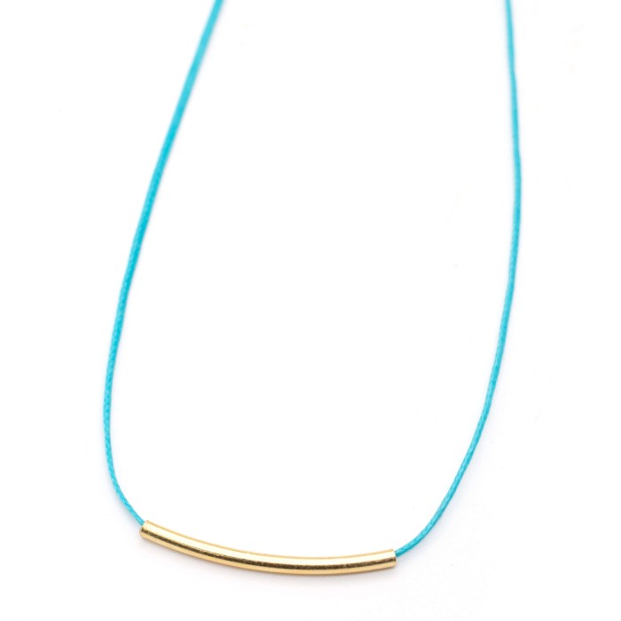A handmade necklace with cord and goldplated silver 925. The necklace's length is adjustable.
