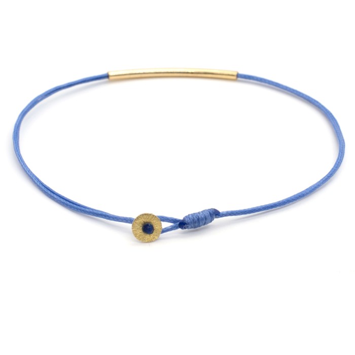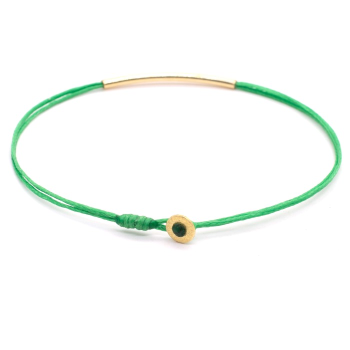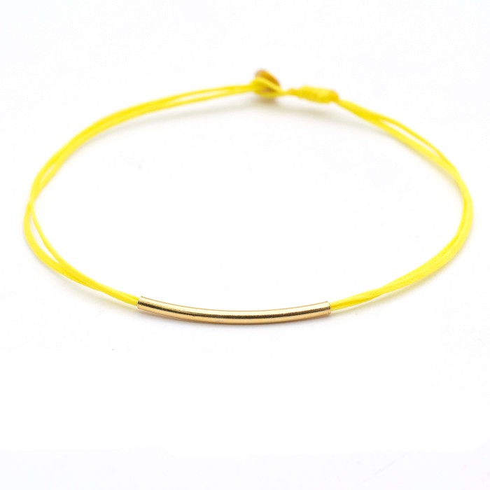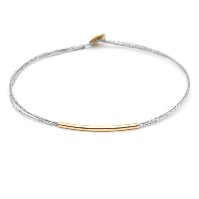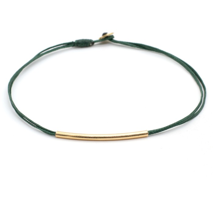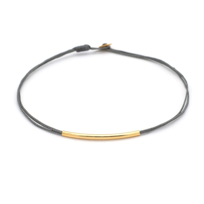A handmade bracelet made out of cord and goldplated silver 925. The main characteristic of the bracelet is the goldplated silver 925, ~3cm little minimal bar. The clasp is also made out of godplated silver 925 and the bracelet's length is adjustable. A minimal jewel of unique elegance and chic design.