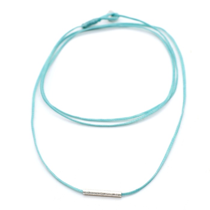 A handmade necklace with cord and silver 925. The necklace's length is adjustable.