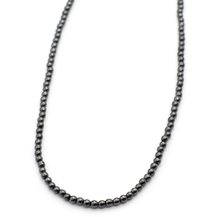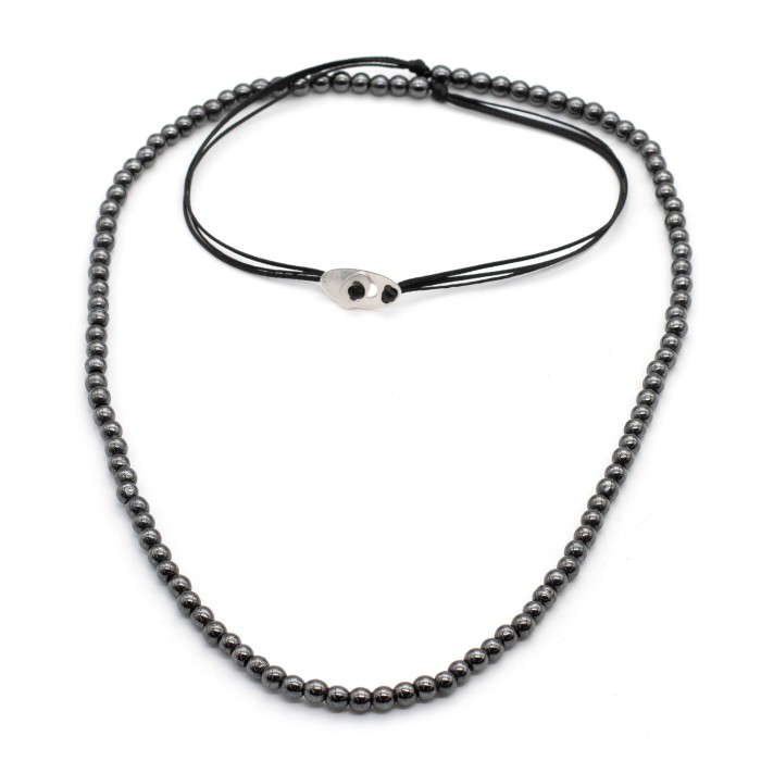 A handmade cord necklace with made out of hematite semiprecious stones and a silver 925 clasp. Its design makes it a jewel that can be an everyday accessory. The necklace has a ~58cm perimeter and it is size adjustable.