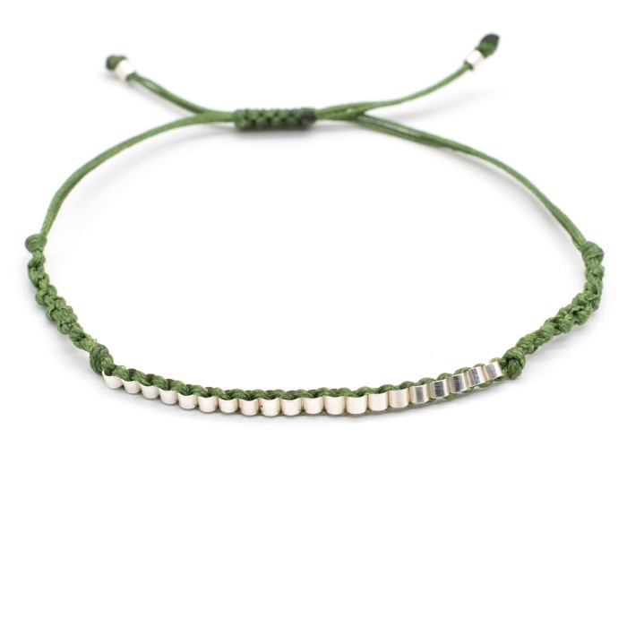 A handmade bracelet made out of cords and silver 925. The 20 main element of the bracelet make a minimal jewel of unique aestherics, ideal for a style of difference and uniqueness. The bracelet's size is adjustable (macrame).