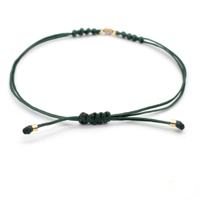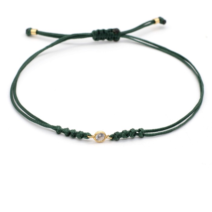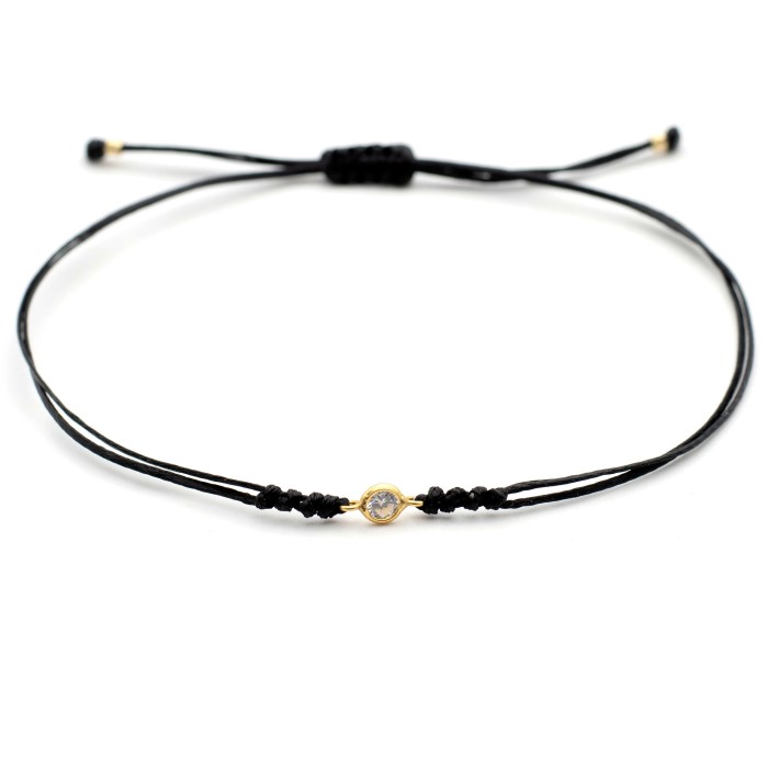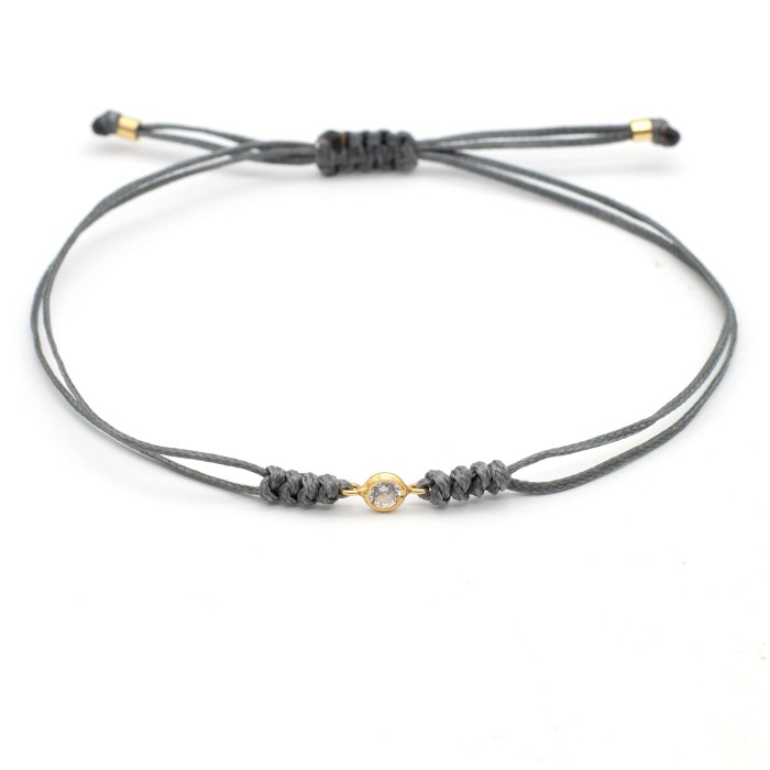 A handmade bracelet made out of cord, which adapts to the size of your hand (macrame). The solitaire and the rest of the elements are made out of goldplated silver 925. Unique and minimal styling for you everyday outfits!