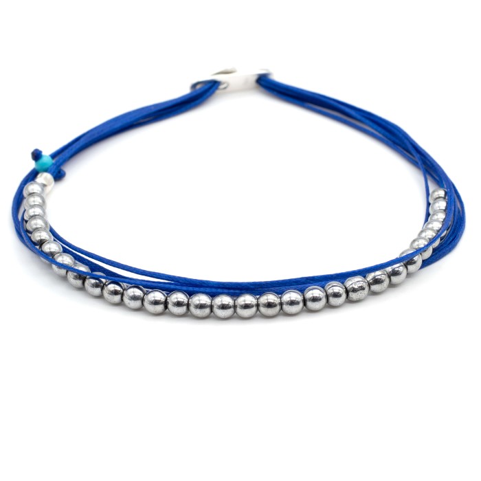 The "Odysseus" bracelet is a unique piece of jewelry that blends the timeless elegance. Crafted from high-quality waxed cord, it is adorned with shimmering hematite stones that exude a sense of harmony and sophistication. The handmade 925 sterling silver clasp ensures security and durability, while the option to customize the cord color allows you to tailor it to your personal style.
