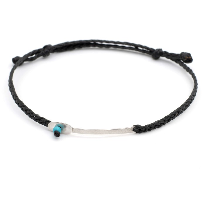 The "Turquoise Moment" bracelet is a handmade accessory featuring braided waxed cord, a 925 sterling silver bar, a turquoise howlite, and an adjustable size, blending discretion with elegance.