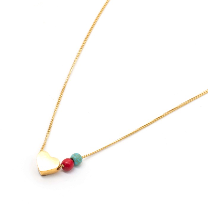 The "Little Hearty CH" is a handmade gold-plated necklace with a small heart charm. Choose your chain length and optionally add a turquoise or red howlite bead. Sweet, simple, and perfect for everyday wear.