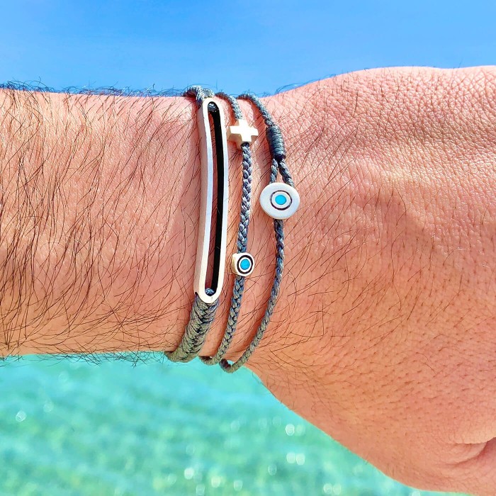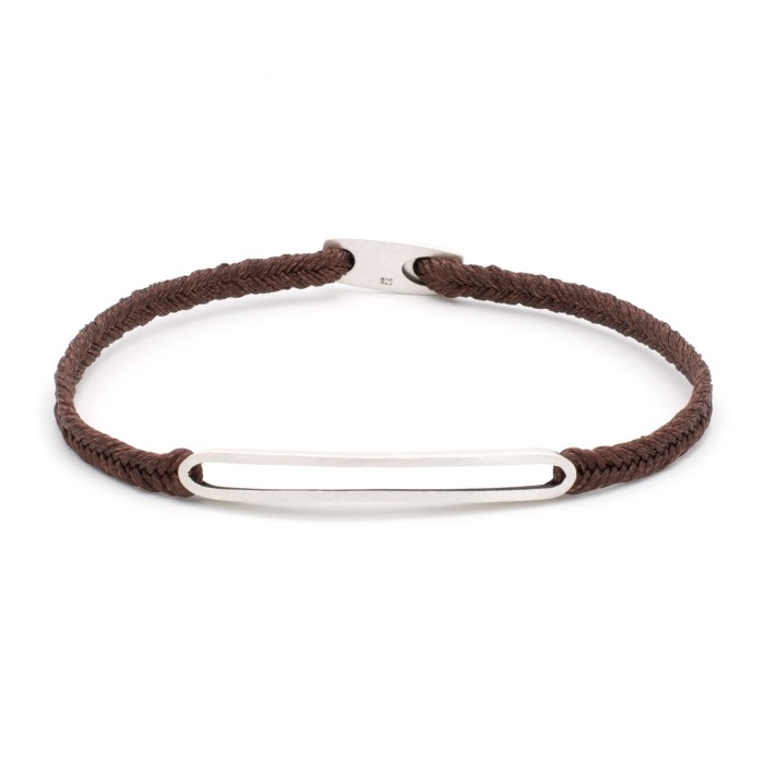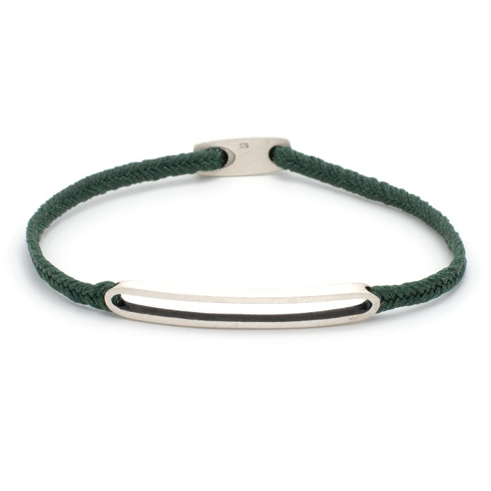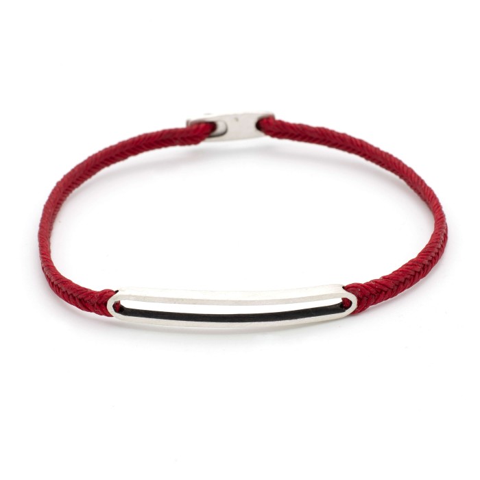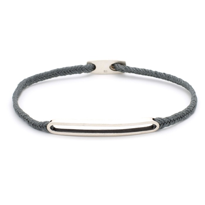 A handmade bracelet made of braided cord, which adapts to the size of your hand. The silver detail (~4,5cm) and the clasp are from sterling silver.